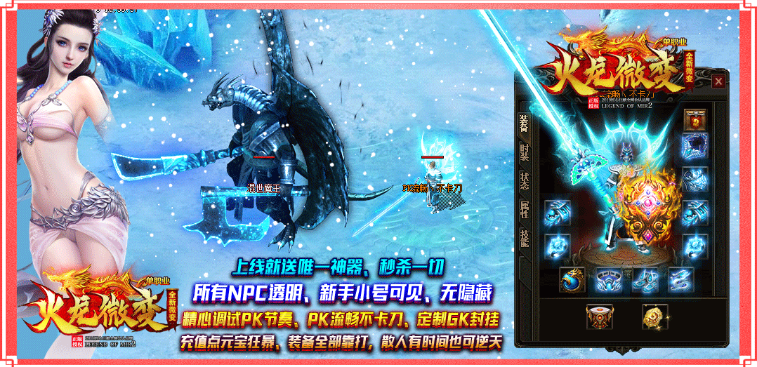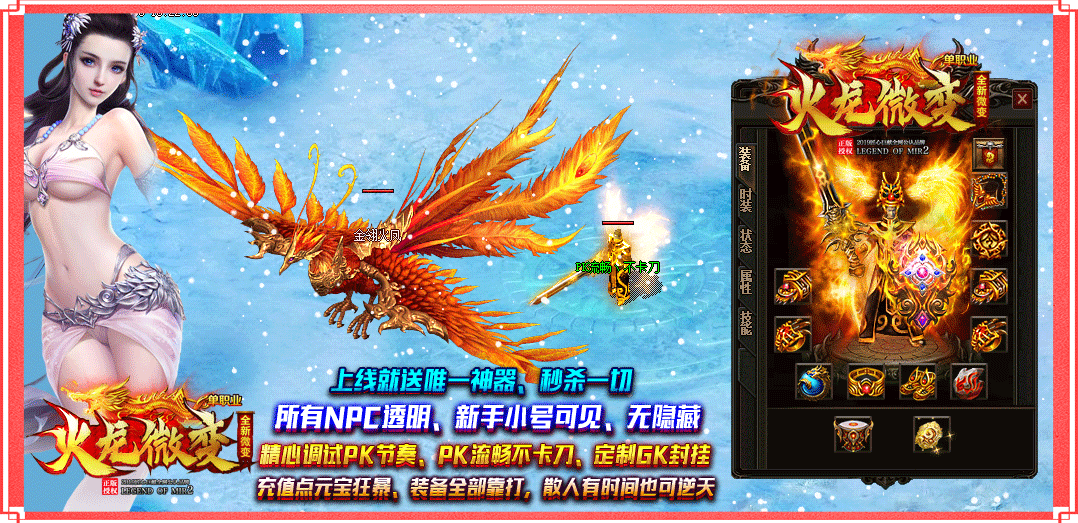内容介绍:适合各类散人发展,元宝装备超好打,账号保值回收,勤劳铸就王者!